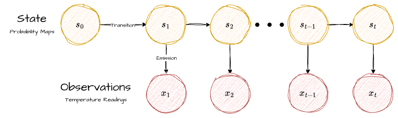 Emission probabilities define the likelihood of observing a particular clue given a specific hidden state (conditioned on the global environment data across the grid). We will employ a deep neural network to learn and estimate this likelihood function, as the relationship between temperature patterns and location can be complex.